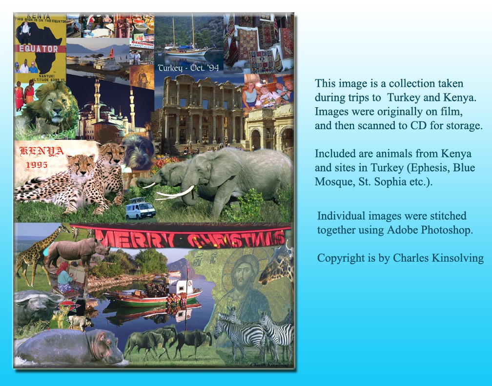 Explore this site, and you will be treated to a number of images created by Charles Kinsolving (Engineering Resume'), and some information showing digital effects that are easily possible with current technology. The site is new, and it is growing and will soon contain many more images and digital imaging information and demonstrations. The images will load somewhat slowly over a 56K connection, since the site was designed for broadband viewing. The Texana Page contains a few typically Texas scenes.